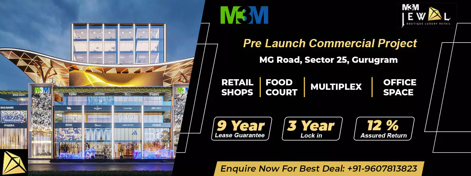 M3M India has announced the launch of M3M Jewel, a commercial project located on Golf Course Extension Road, Sector 25, Gurugram. The project is priced starting at On Request* and comes in a variety of retail sizes ranging from 100 to 500 square feet. M3M Jewel is spread over 12 acres and is strategically located in the heart of Gurugram with easy accessibility to all major landmarks and civic amenities. The sector is well-connected to the Dwarka Expressway, the Southern Peripheral Road, and National Highway 8 (NH-8).